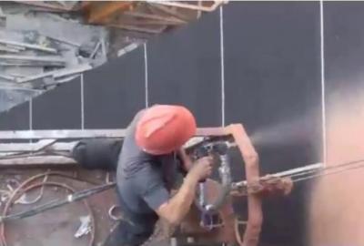 真石漆噴涂機 溫馨走進施工現場 展示團隊關